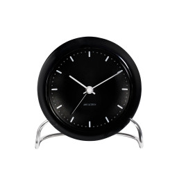 Arne Jacobsens City Hall bordur er baseret på hans originale bordur, der blev designet i 1939. Denne model er designet til Rødovre Rådhus og har et universelt udtryk uden tal. Uret har snooze, alarm og lys, der aktiveres med den skjulte bevægelsessensor på toppen af uret. Mål: Ø 11 x H 12 cm.